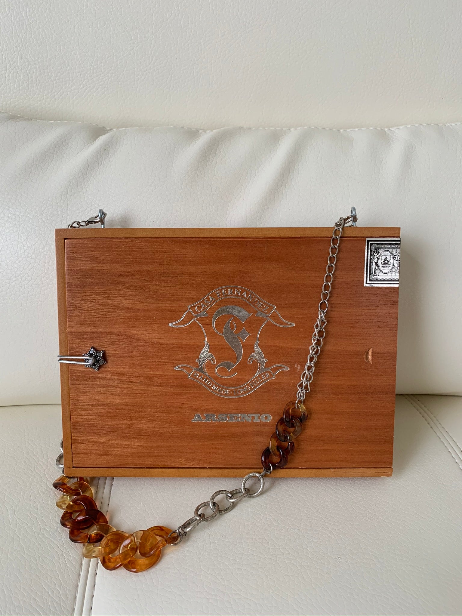 Each product is repurposed & upcycled from a wooden cigar box, originating from various countries around the world. Each cigar box is designed & handcrafted into a 1-of-1 exclusive Cigaros Handbags in Atlanta, GA & shipped out to you!